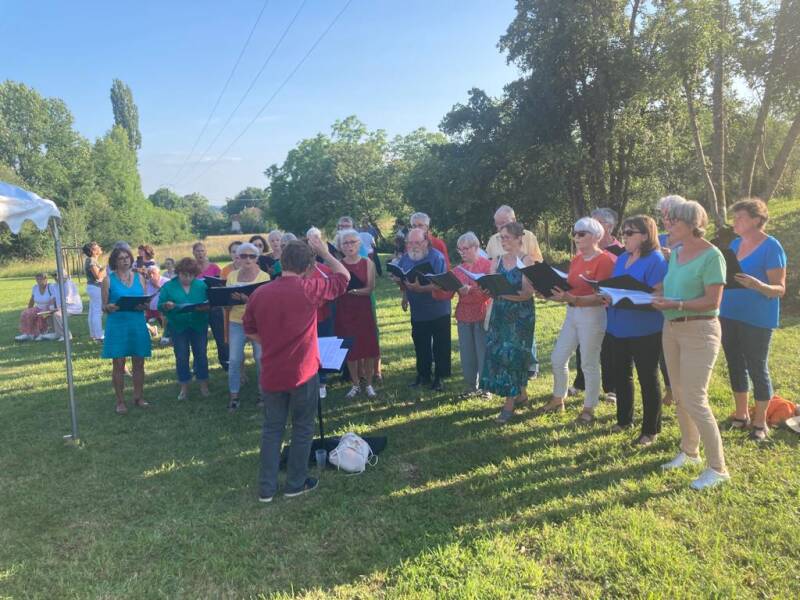 nous étions une vingtaine à chanter sous la halle des extraits de notre programme de Juin 2023.